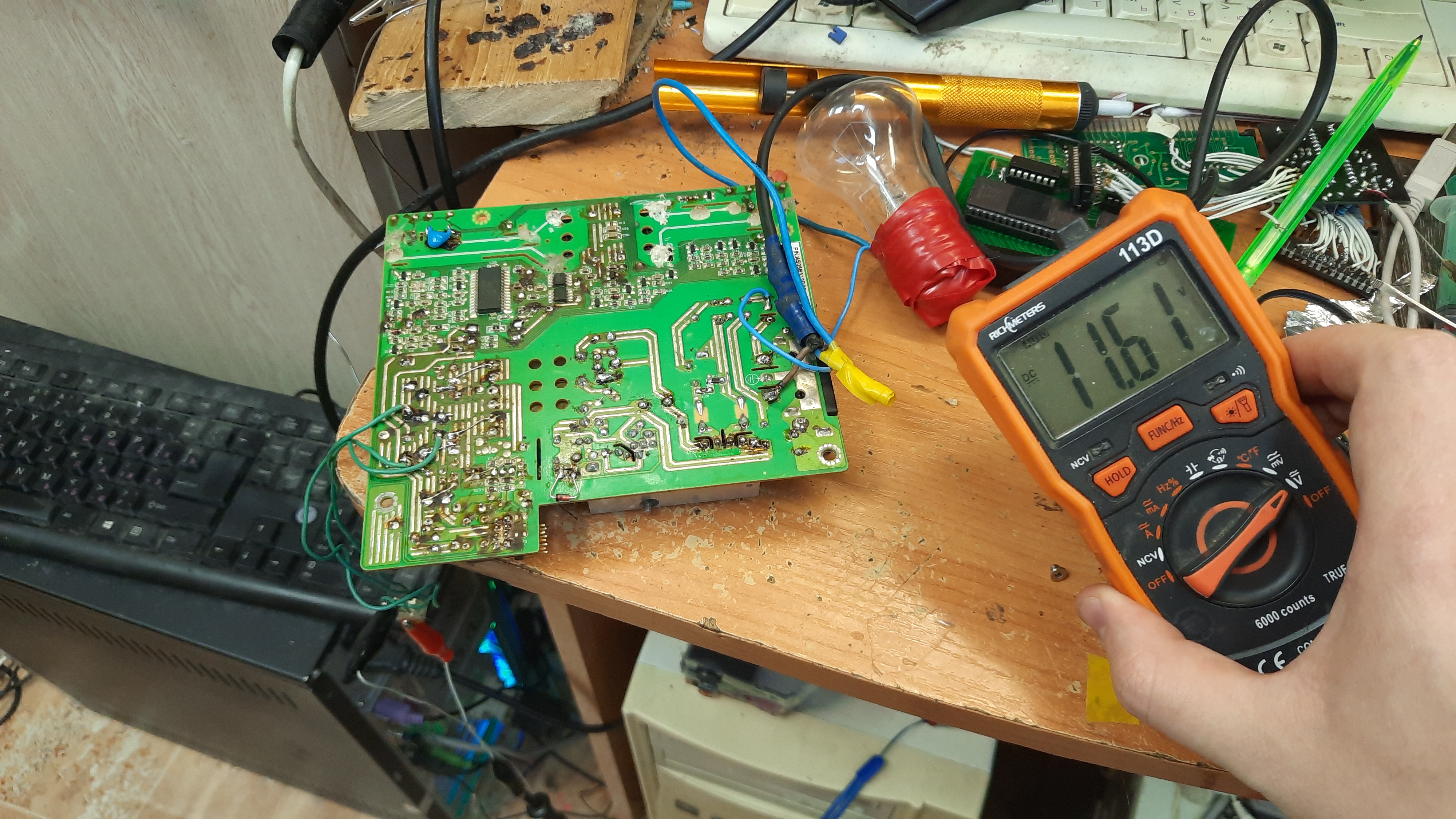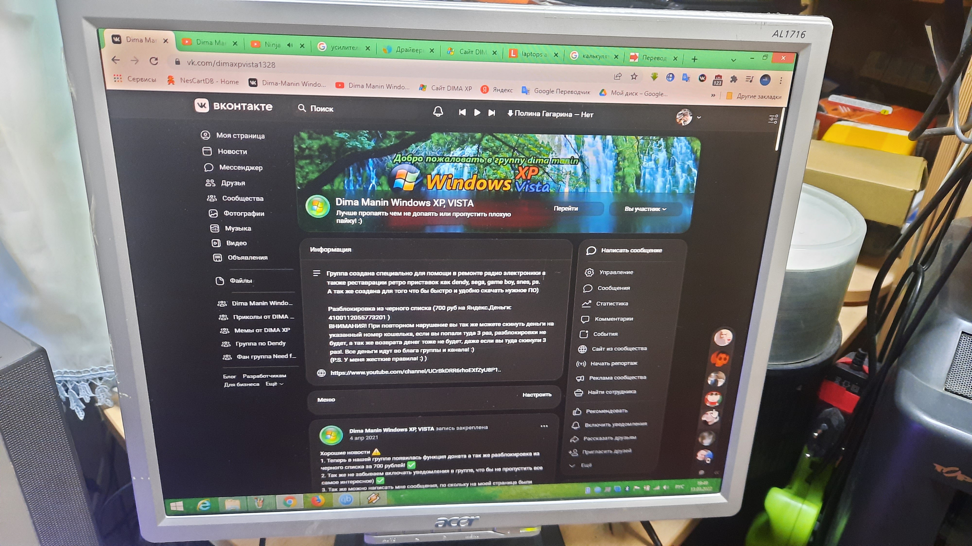 Всех приветствую! Наконец-то спустя столько долго лет удалось побороть родной блок питания монитора Acer AL1716. Найден был этот монитор на помойки в 2016 году, и изначальная неисправность была в блоке питания, ШИМ FSDM0565R Был взорван, так же сгорели и другие радиодетали. Но из за моего малого опыта к сожалению я не смог осилить данный блок питания в 2016 году. Увы! Тогда был мозговой штурм, по поводу опознания ШИМ Контроллера, поскольку та часть где написана маркировка попросту отлетела при взрыве. И как оказалось в этих Acer’ах очень много разных ревизий и в каждый из них разный БП. Но оказывается нужно было не по модели монитора искать схему на БП, а именно по той маркировки что на БП (FSP043-2PI01). После гугления по маркировки на БП нашлась схема где и было написано модель ШИМ. После чего модель ШИМ была куплена в радиомагазине. Но оказалось после того как я впаял купленный ШИМ в плату, и включения и оказалось что через лампу все впорядки, но после включения напрямую через предохранитель ШИМ вновь взорвался. Увы и ах, 150 руб по моим тогдашнем меркам были большие деньги, коту под хвост. 🙁 Прошло 2 года… Настал 2018 год, этот год был значительным в плане выпуска постов, в этот год я узнал то что оказывается можно вместо родного блока питания подключить любой внешний который может выдавать те же самые напряжения и держать такой же ток что и родной. И был в итоге припаян разъем от флоппи дисковода и подключен обычный компьютерный БП. И монитор успешно проработал до 30.01.2022. И наконец-то где то примерно в феврале было решено – Восстановить родной блок питания, ранее был заказан с aliexpress новый ШИМ контролер, и впаян, но тут оказалось что старый Димон из 2016 по выпаявал ещё деталей, а так же упустил другие пробитые детали, так же оказалось что изначальная причина была все таки скорее всего не гроза а все таки сетевая банка, а взрыв ШИМ и сгорания других деталей уже следствия. То что ШИМ контроллер может взорваться из за не годной сетевой банки, это я лично проверил на своем опыте, конечно до взрыва я не доводил, но радиатор ШИМ уже кипел через 5 мин просто работы. + Ко всему этому ТПИ свистел и трещал, стало быть БП работает не в нормальном режиме. И перегрев вполне мог привести ко взрыву ШИМ контроллера. Короче пришлось смотреть на схему и заказывать дополнительно детали которые были выпаяны мною ранее, и по всей видимости они были пробиты или в обрыве. Но вот они наконец-то приехали, и были впаяны, но не приехала до сих пор ещё одна деталь – Сетевая банка. И мне пришлось потрошить блок питания не рабочего струйного принтера Canon (Там обычно такие сетевые банки тоже ставились), но и опять тут не все так просто, припаяна банка была прямиком в плату, а в мониторе там была впаяна сетевая банка в лежачем положение. Но не беда, благо я не выбрасывал обкусанные ножки от радиодеталей после сборки картриджей, и тут меня они выручили. Сетевая банка емкость и ESR в норме. И первое включения блока питания в сеть не очень было удачное, по каким та причинам лампа при включение не мигнула. Оказалось что я просто накосячил когда припаявал лампу для включения. По правилам нужно ноль пускать напрямую на БП а фазу через лампу к фазе. Но я припаял ноль к фазе которая идет на 1 ногу предохранителя а фазу через лампу на 2 ногу предохранителя, предохранителя на плате не было, поскольку он сгорел во 2 раз ког