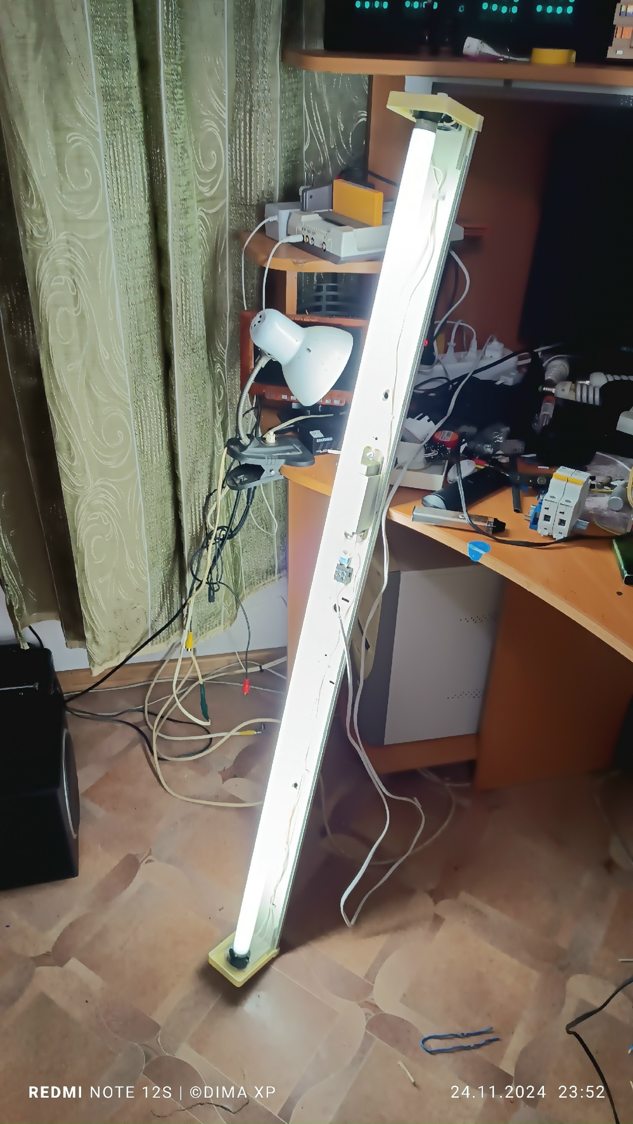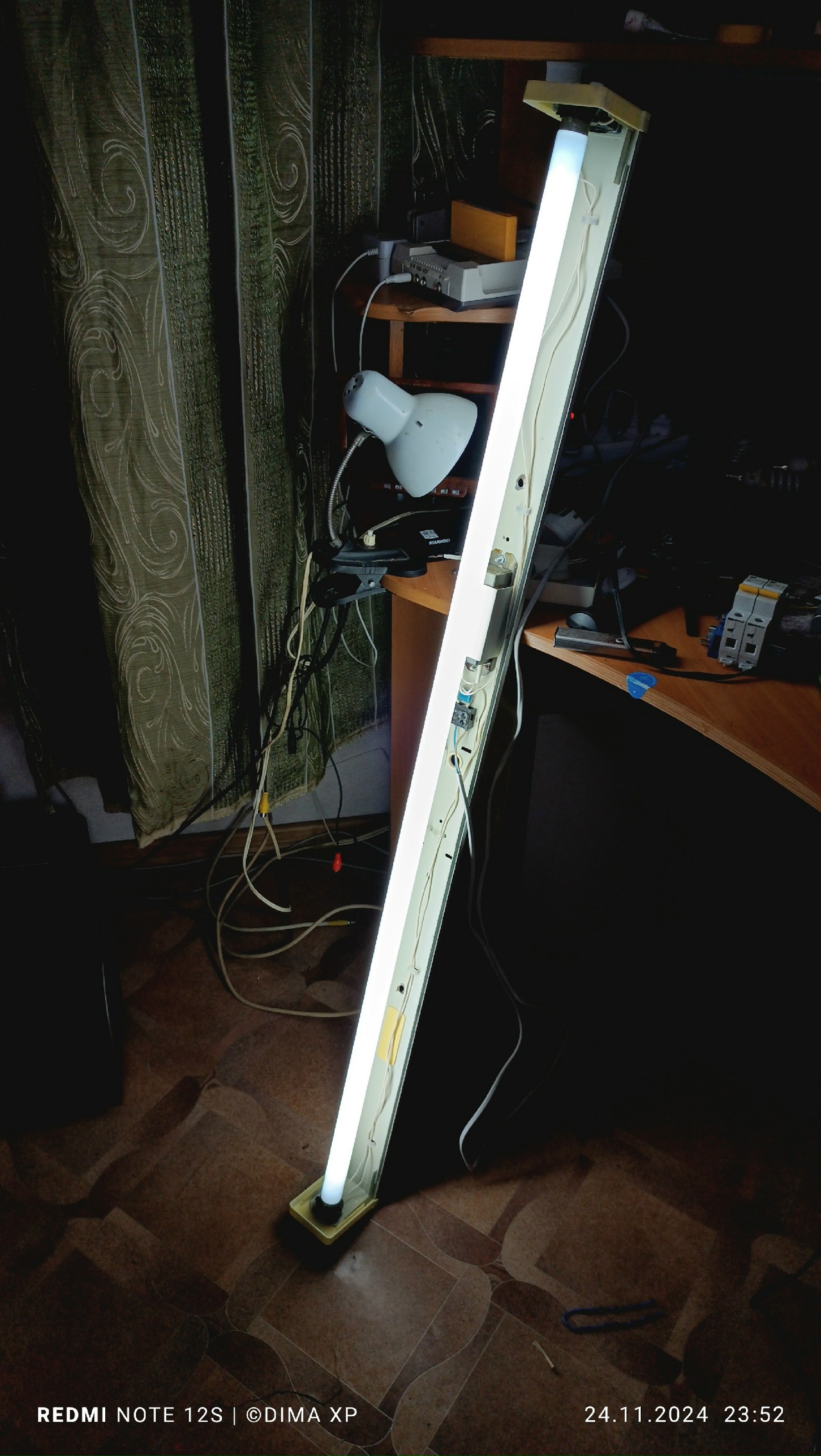 Так как постов давно не было, но будет обязательно! Решил сделать пост про приведение светильника в презентабельный вид. Как то в одном подъезде, когда шёл на заявку с ремонтом люстры, заметил что подъезд прошел капитальный ремонт, заметил то что светильники уже работают новые светодиодные, только пару успели уже сгореть) Однако весели два светильника, которые уже не подключены, и врятли будут использоваться в дальнейшем. Не долго думая, сегодня пошел со стремянкой, отвёртками, бокорезами, и бесконтактным индикатором фазы, и снял их, там они врятли уже когда либа будут работать, у меня им будет лучше. Снял, принес на объект, про который будет целый ролик в будущем, и запустил, оказалось что оба неисправны, в одном нет стартера, в другом сгорела лампа, а так же стартер в последний раз для себя запустил исправную лампу с другого светильника, и тоже умер. В общем досталось им по жизне в подъезде, но теперь они будут служить у меня) Не смотря на то что в данный момент у меня нет стартеров под рукой, я запустил вручную, простым замыканием контактов стартера, если создавать плохой контакт, это вызовет пробой в лампе, и она загорится) Завтра съезжу за город, и куплю стартера, в ближайших магазинах продаётся китайская шляпа, а за городом есть по интереснее стартера от филипс.